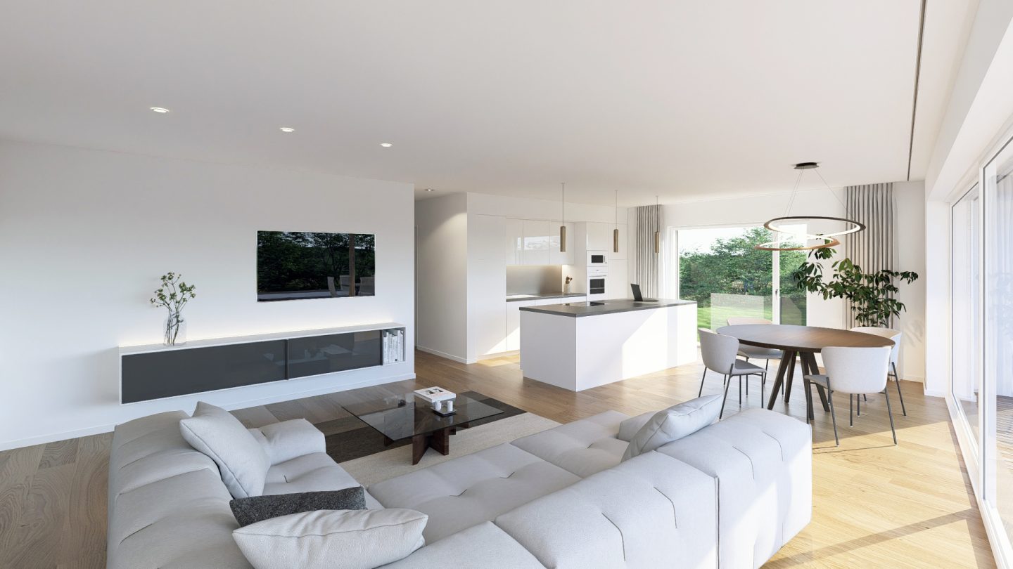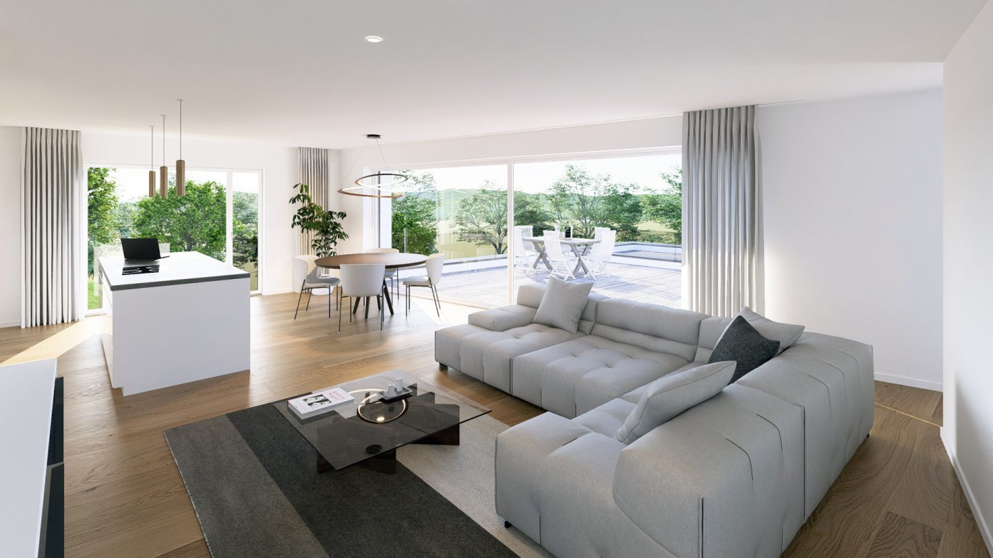 Chaque logement dispose de pièces spacieuses, d’un espace de vie avec cuisine ouverte. La disposition des espaces extérieurs orientés et réparti de manière spécifique, confére pour chaque logement calme et intimité.