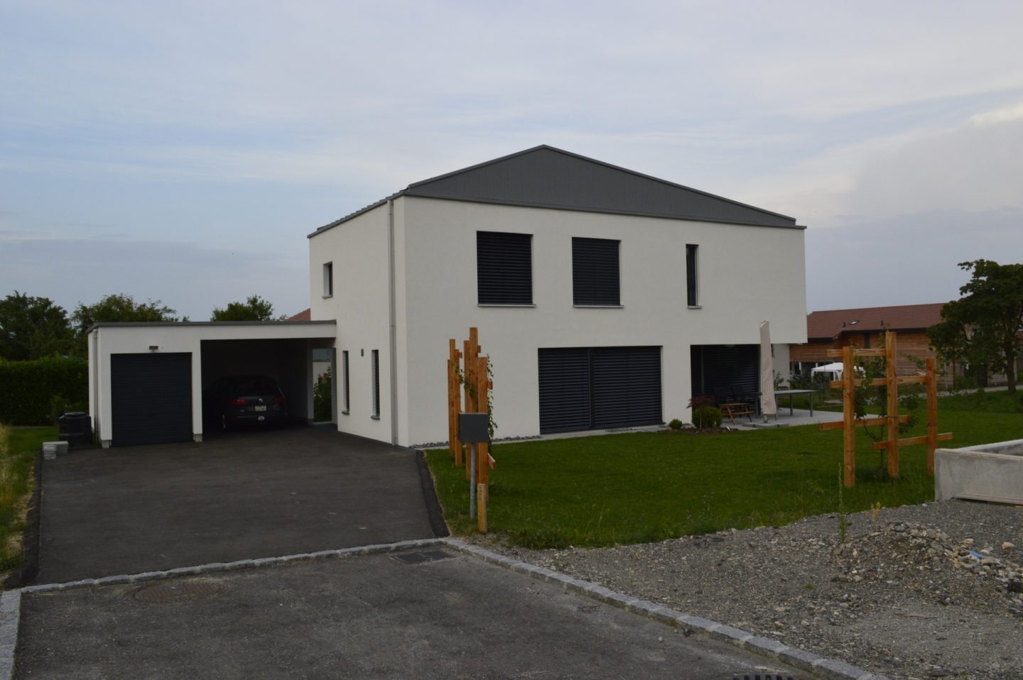 Situé dans un écrin de verdure, au cœur du village fribourgeois de St-Aubin, la parcelle est judicieusement valorisée par la construction de 4 villas jumelées par les couverts et 3 villas individuelles. Ces 7 constructions s’articulent autour d’une route de desserte et d’un réseau d’équipement créé à cet effet. Afin de créer un ensemble cohérent, l’implantation, la volumétrie et les matériaux qui touchent au traitement des façades ont été imposés. Chaque acquéreur a pu ensuite agir et personnaliser sa propriété.